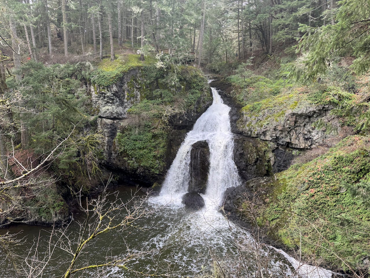 Ironically, when I got to the trailhead, a sign informed me that a section of trail was closed due to a landslide. “Oh sure,” the cynic in me scoffed, “water is supposed to be my symbol of hope today, and yet it’s revealing itself as harmful.” I could see the waterfall from a different vantage point across the lagoon, but I wouldn’t be able to continue the familiar trail to one of my favourite watery places – where the lagoon meets the sea.